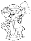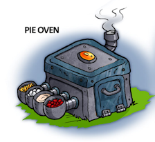 The Pie Maker, seen from first concept to the finished version used in the game: